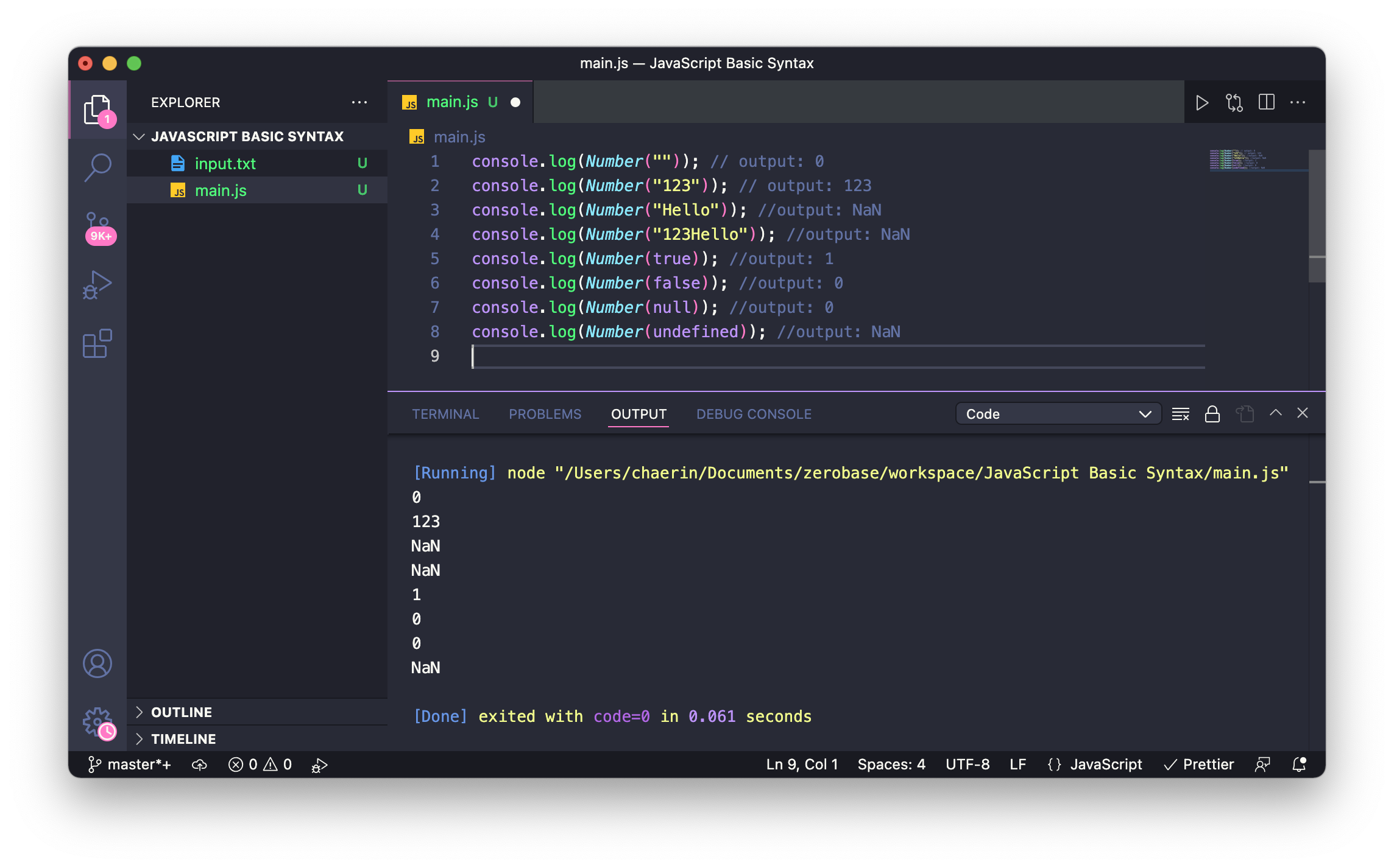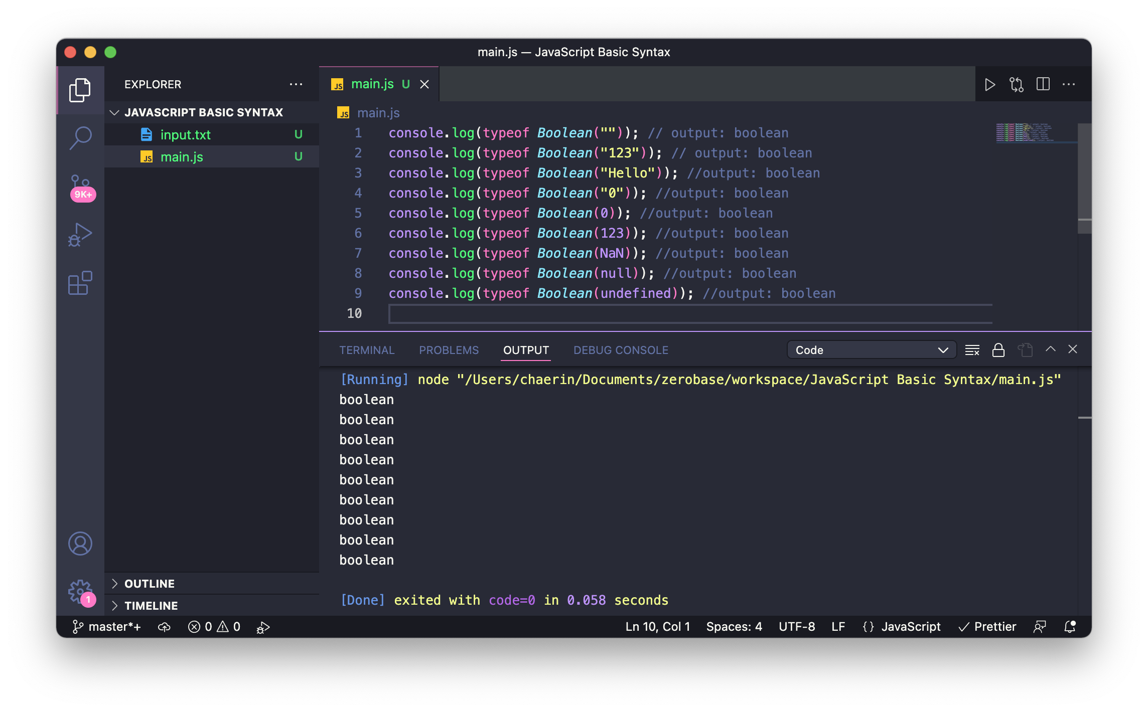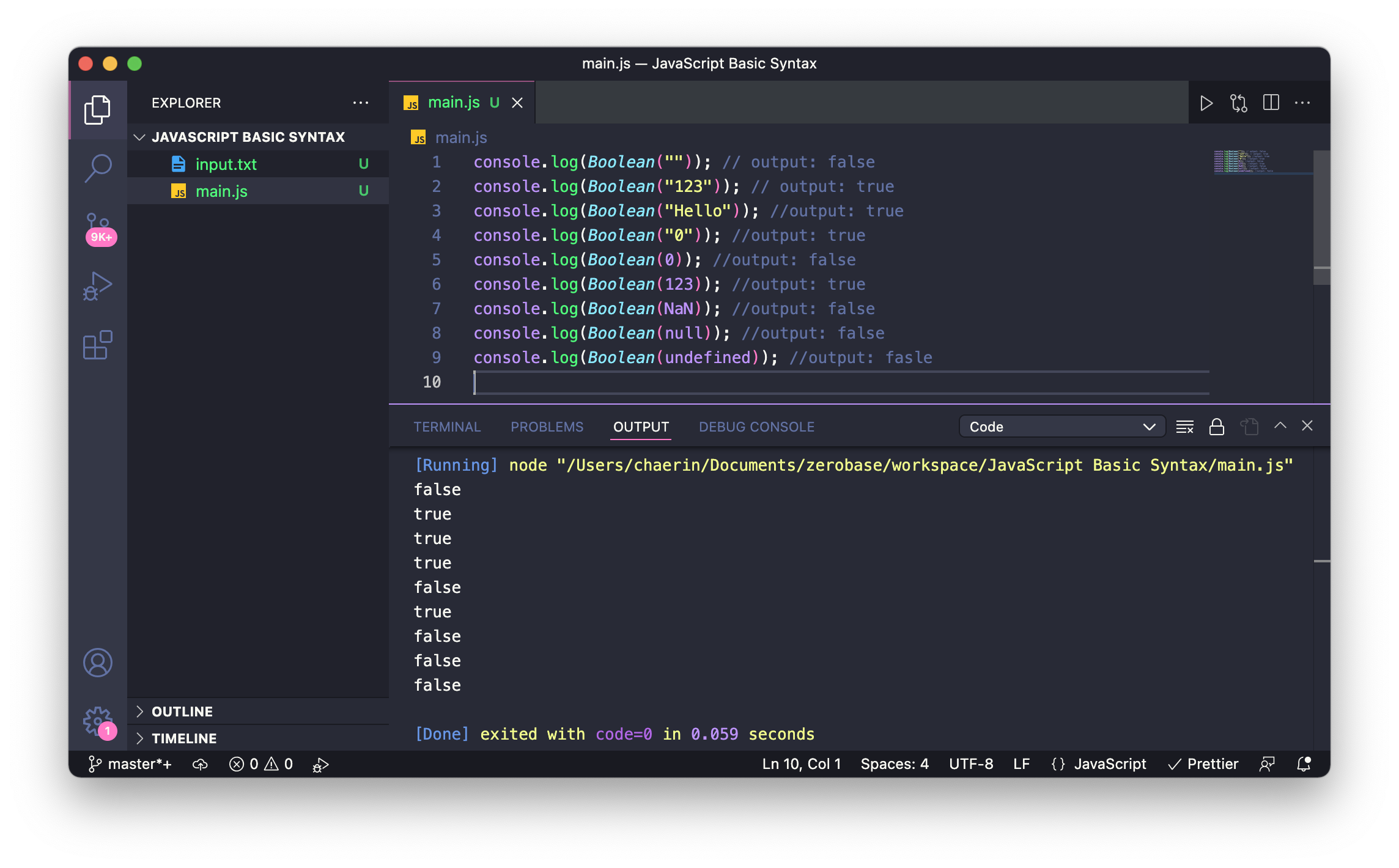 - 0, 빈 문자열, NaN, null, undefined는 fase가 됨!