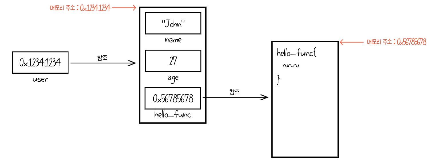 - 객체에 property로서 저장된 함수를 메서드(method)라고 함