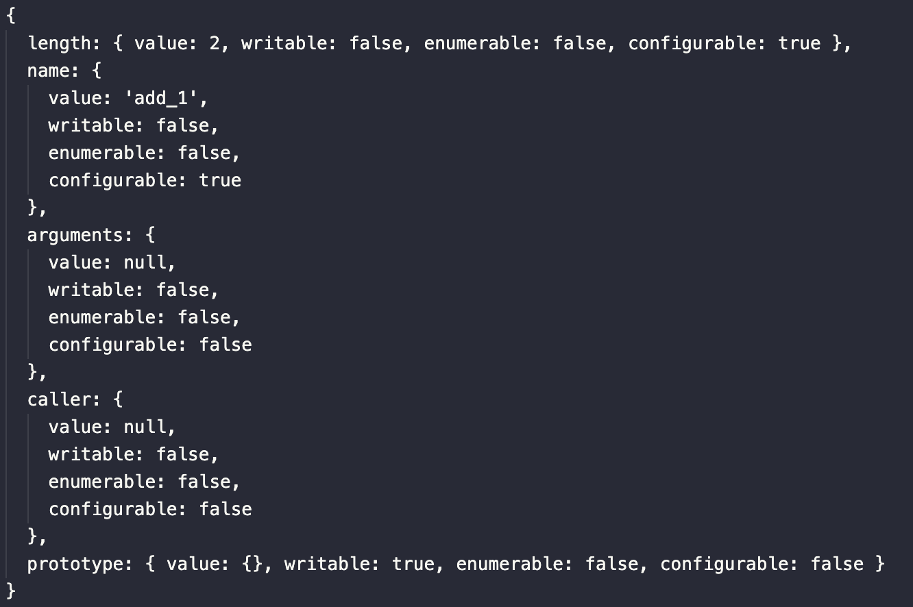 - getOwnPropertyDescriptors()를 이용해 각 함수의 세부 정보 확인