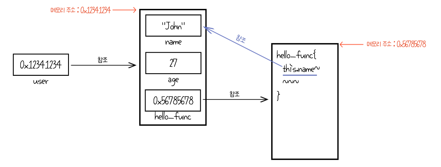 - 메서드에서 객체 내부의 속성(property)값을 접근할 수 있는 지시자