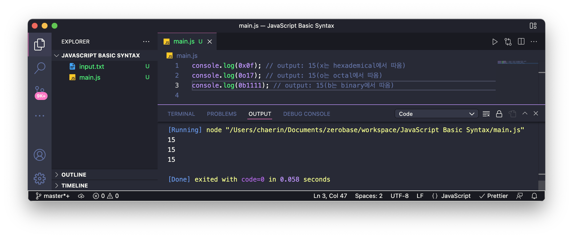 - 16진수(0x), 0o(8진수), 0b(2진수) 표기 가능
