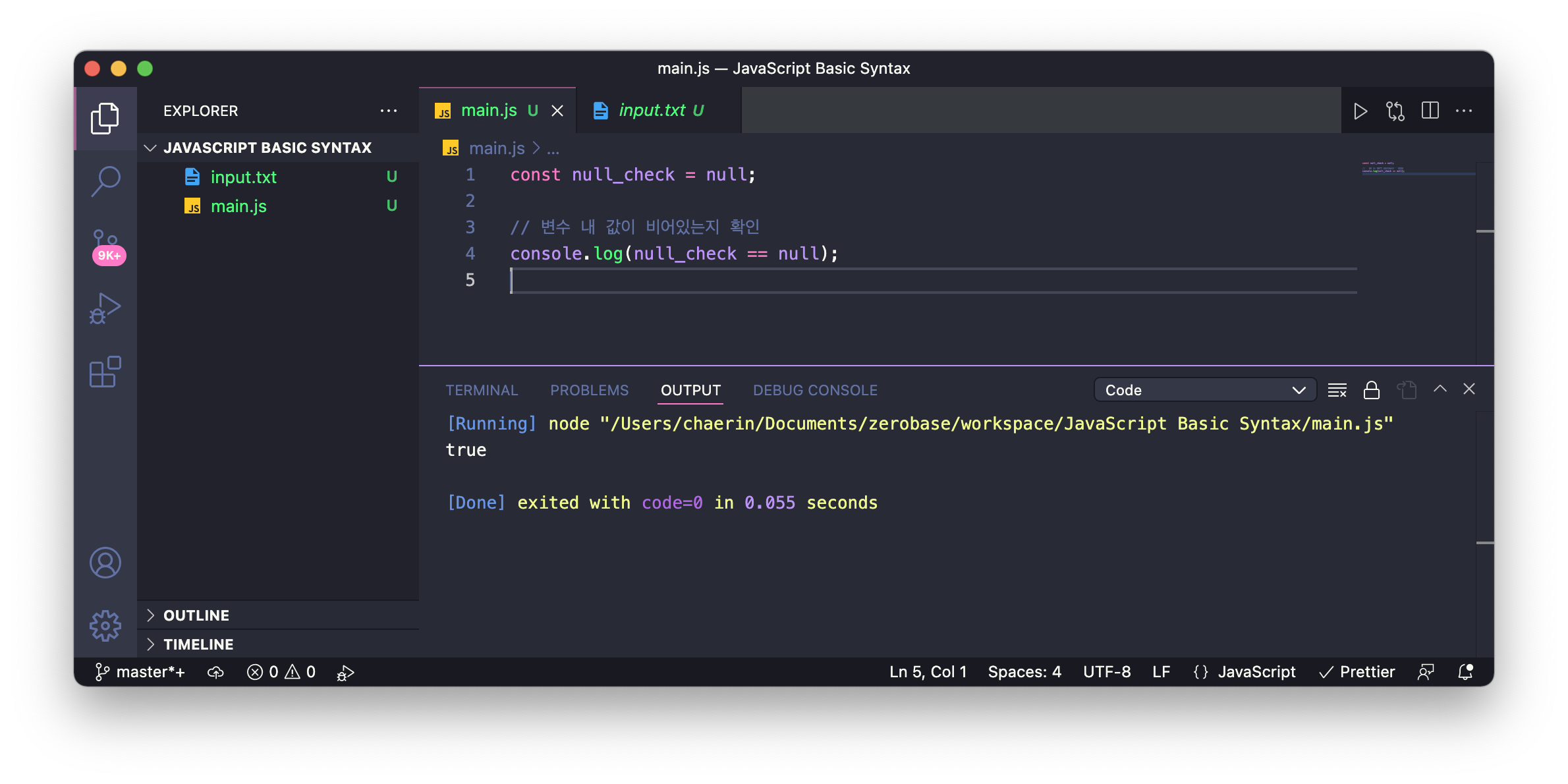 - 변수에 값이 할당되어있는지 확인하는 데 사용