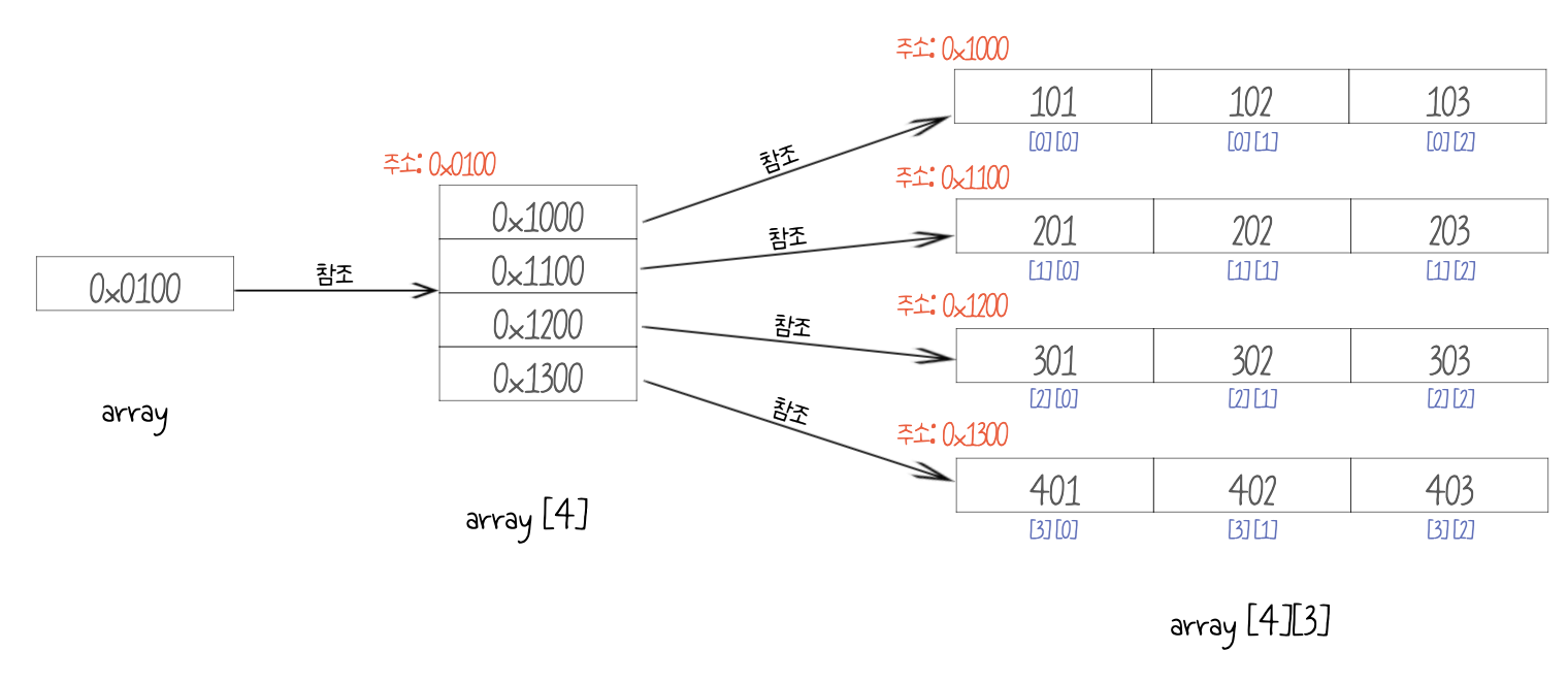 console.log(array[0][0]); // output: 101 (0번째 행의 0번째 요소)
