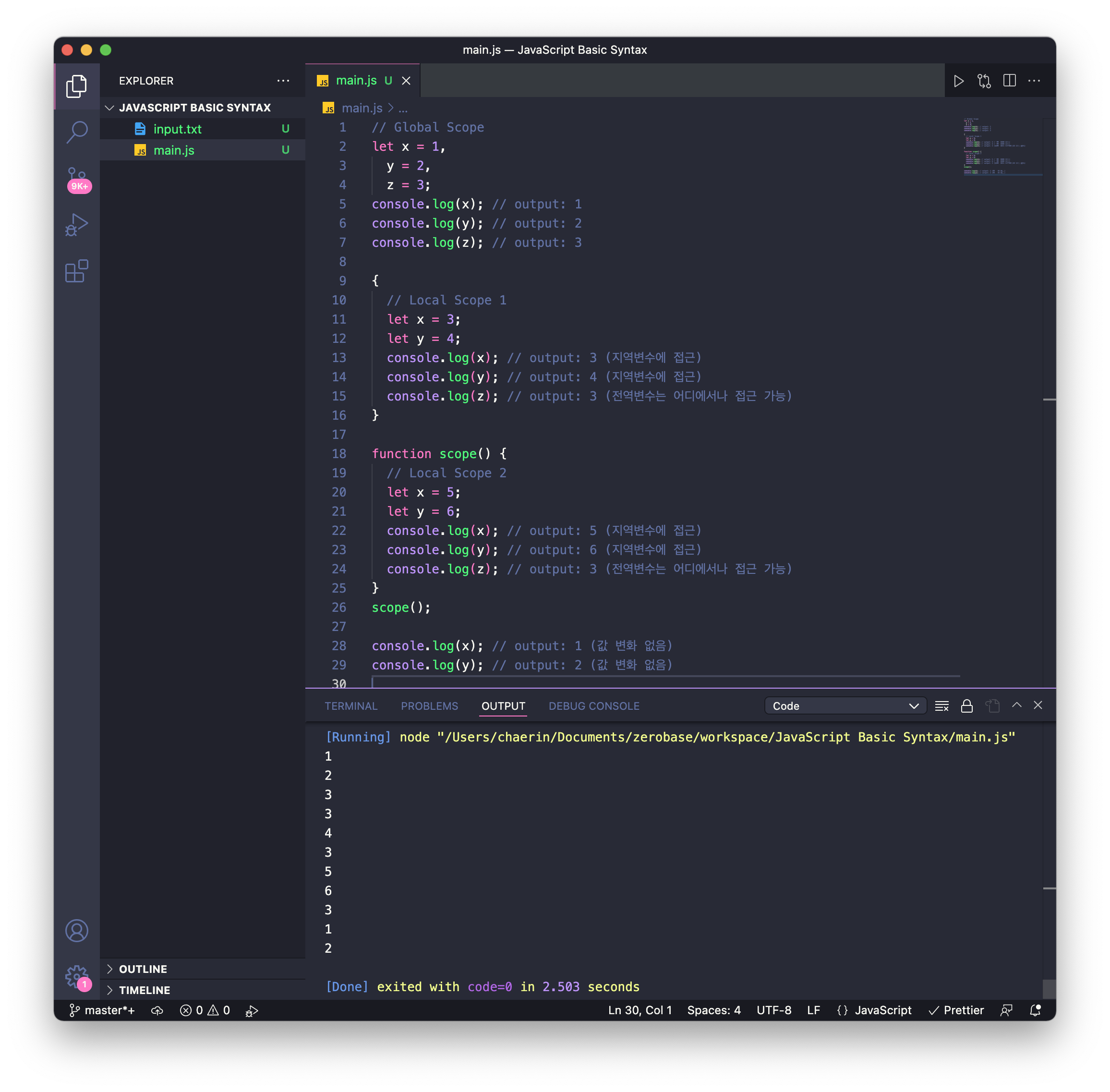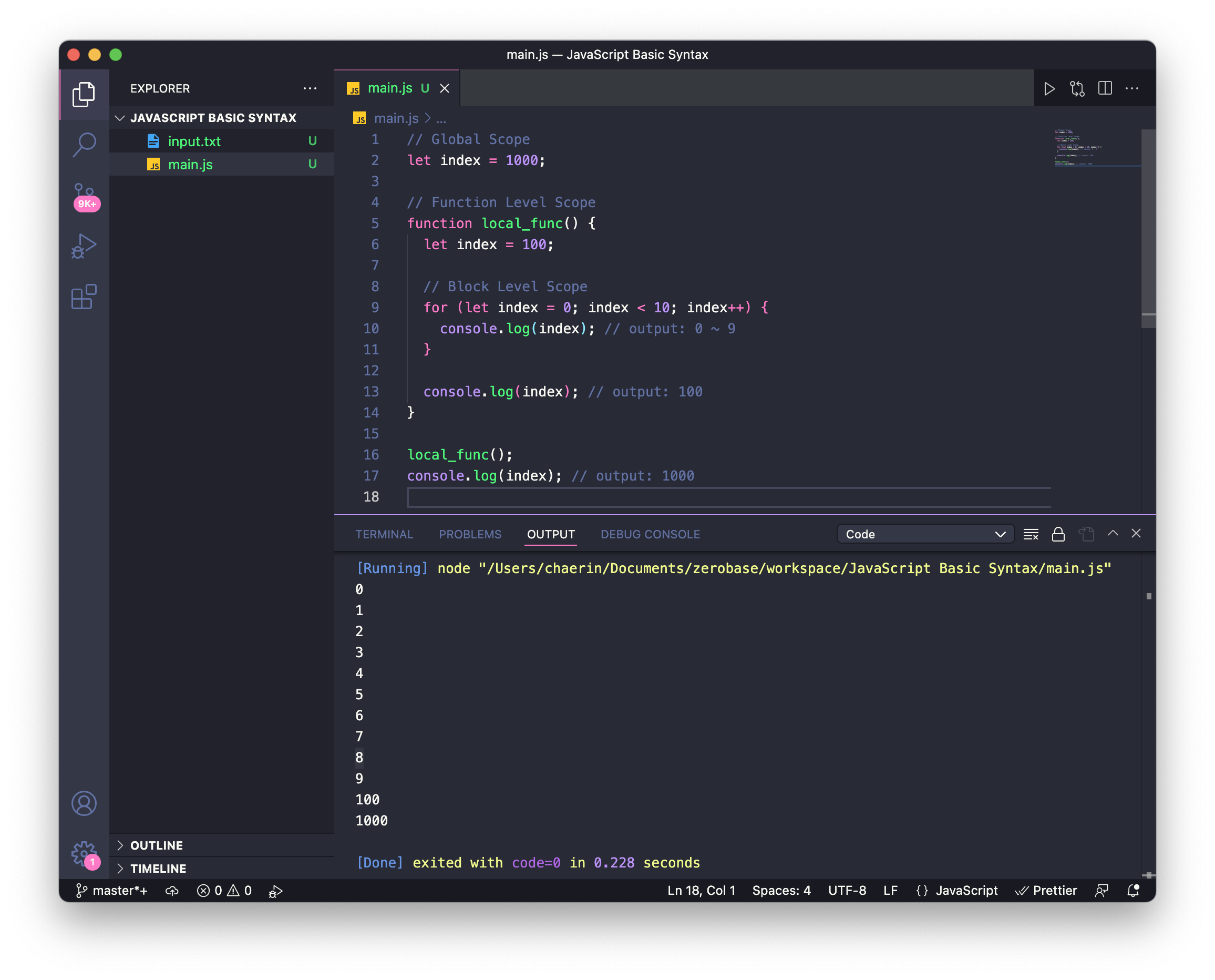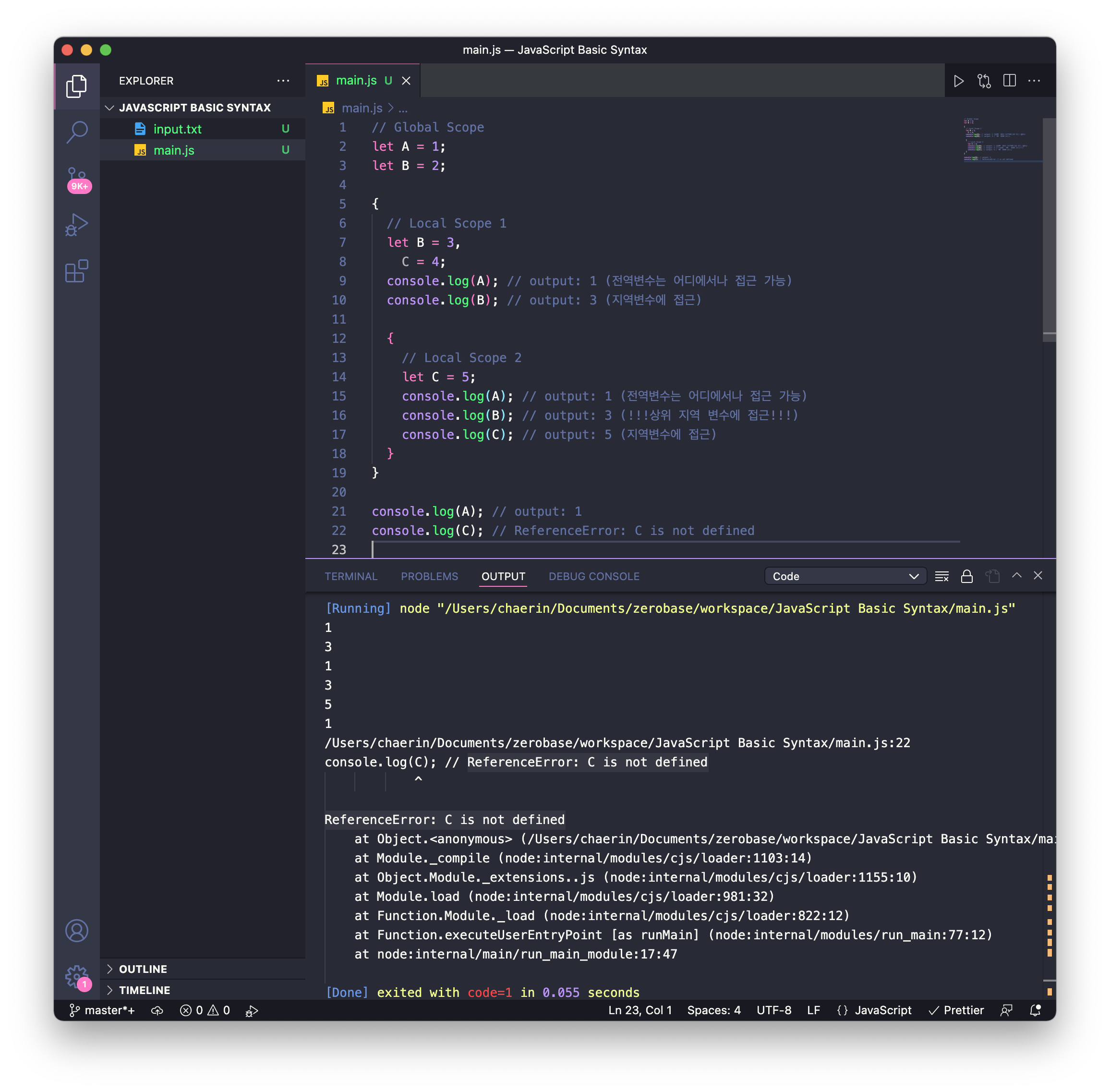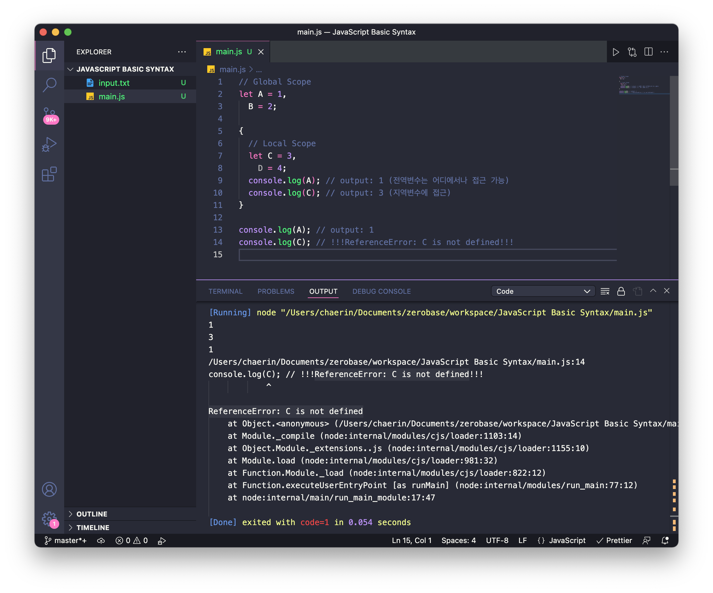 - Local Scope(block/function level scope)에서 선언된 지역변수는 해당 지역 내에서만 접근 가능
